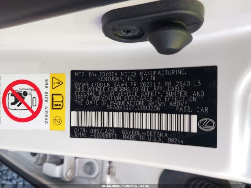 2018 LEXUS ES 350 2018 року Бензин, 3.5, Передний привод, vin - 58ABK1GG7JU093206 из США