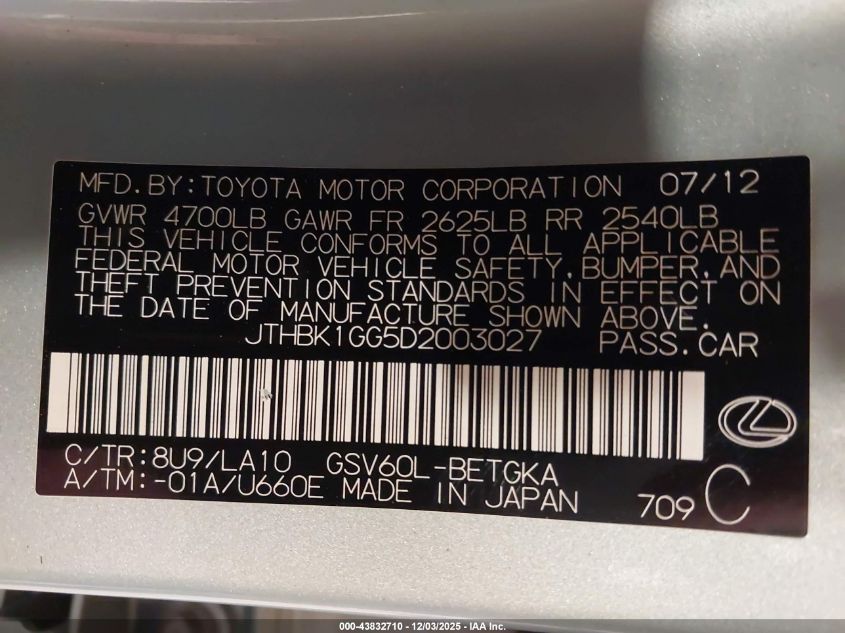 Цвет СинийЦилиндры 6Привод Передний приводVIN JTHBK1GG5D2003027Состояние Заводится и едет (проверено)Повреждения Задняя AutoRIA
