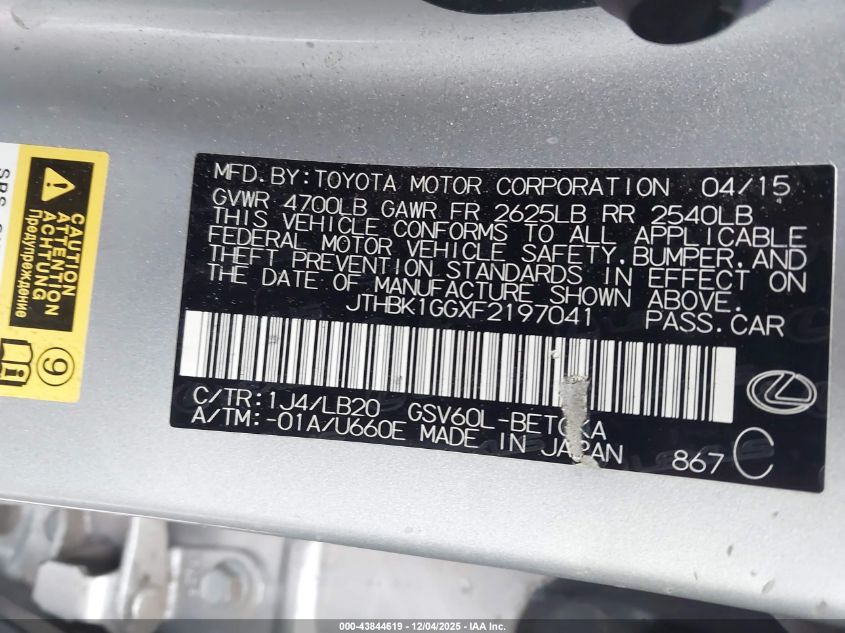 Цвет СеребряныйЦилиндры 6Привод Передний приводVIN JTHBK1GGXF2197041Состояние Заводится и едет (проверено)Повреждения Передняя или задняя AutoRIA