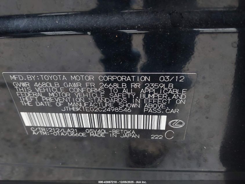 2012 LEXUS ES 350