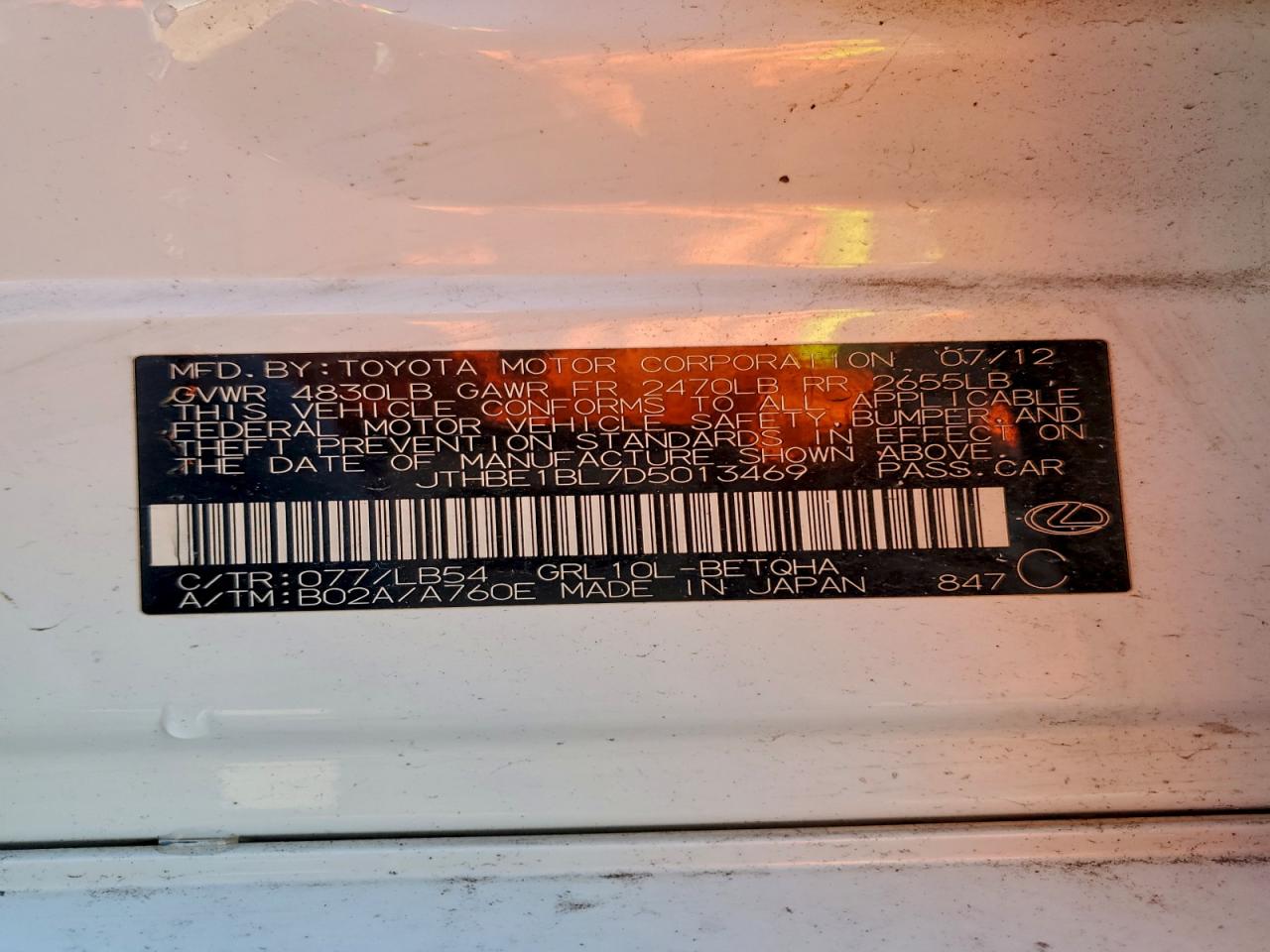 Цвет БелыйЦилиндры 6Привод Задний приводVIN JTHBE1BL7D5013469Состояние Заводится и едет (проверено)Повреждения Передняя или задняя AutoRIA