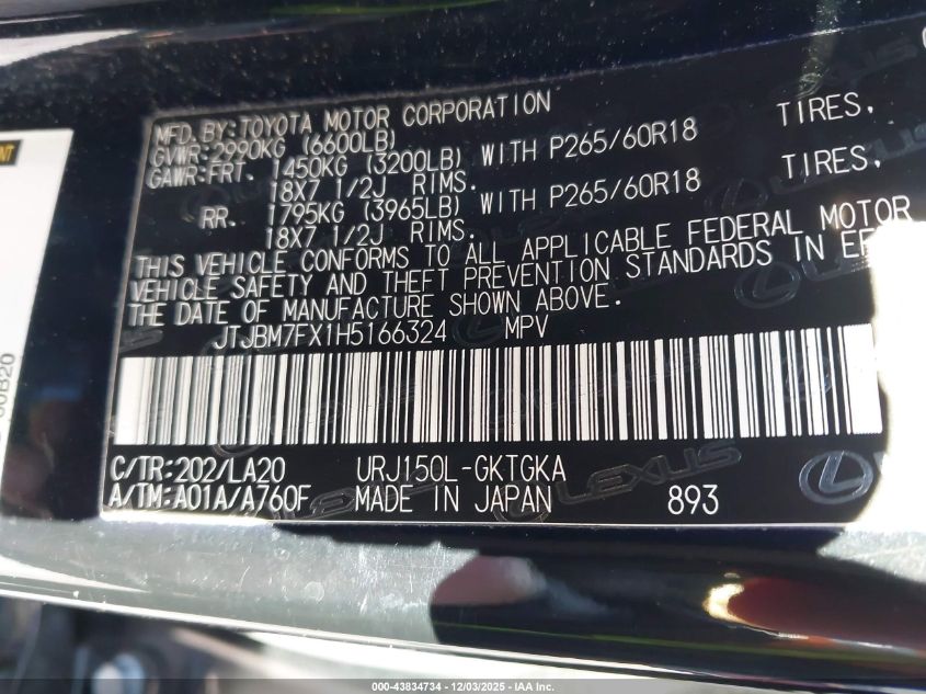 2017 LEXUS GX 460 2017 року Бензин, 4.6, Полный привод, vin - JTJBM7FX1H5166324 из США
