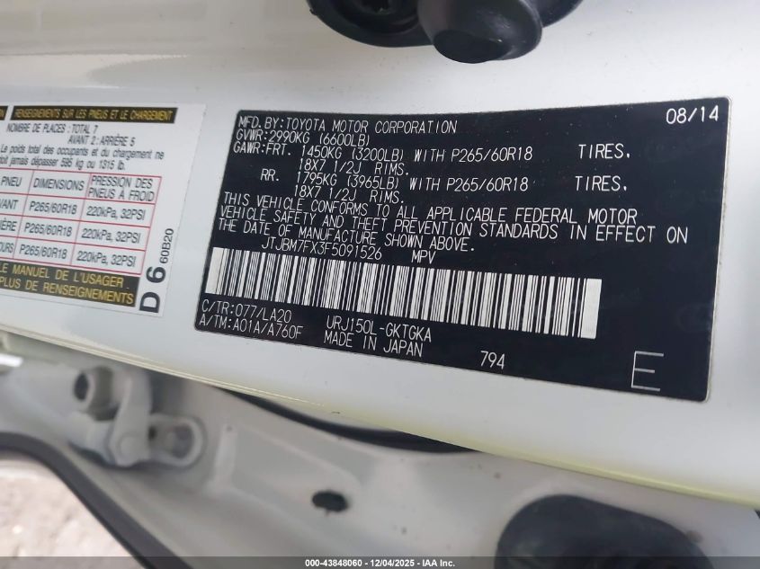 Цвет БелыйЦилиндры 8Привод Полный приводVIN JTJBM7FX3F5091526Состояние СтационарноПовреждения Передняя или задняя AutoRIA