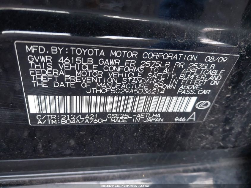 2010 LEXUS IS 250 2010 року Бензин, 2.5, Полный привод, vin - JTHCF5C29A5036214 из США