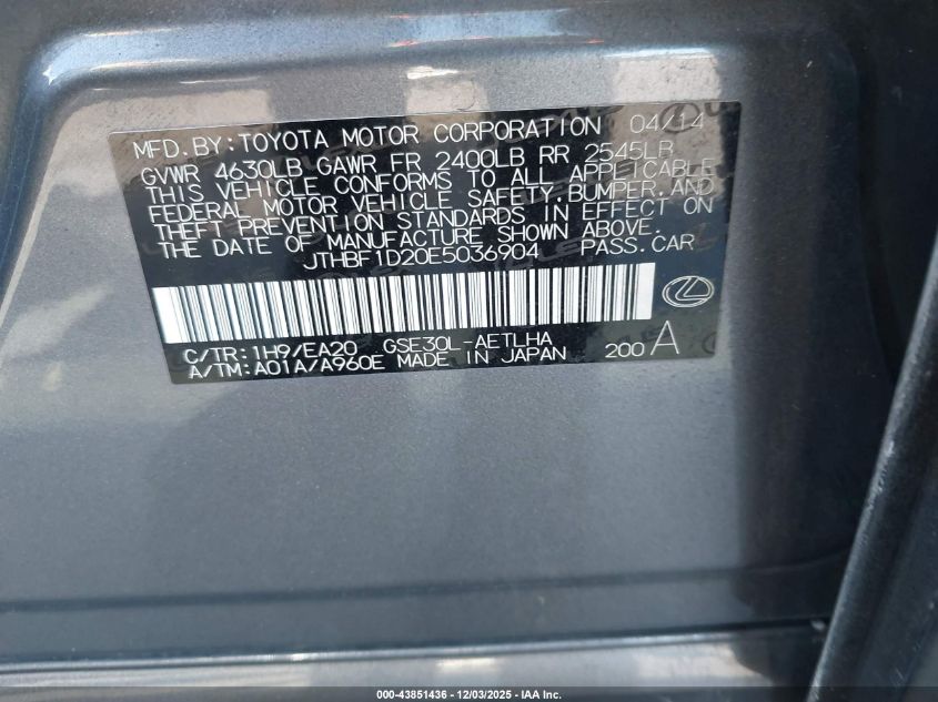 2014 LEXUS IS 250 2014 року Бензин, 2.5, Задний привод, vin - JTHBF1D20E5036904 из США