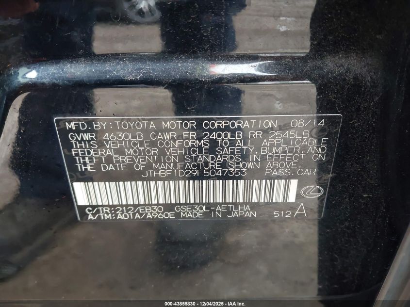 2015 LEXUS IS 250 2015 року Бензин, 2.5, Задний привод, vin - JTHBF1D29F5047353 из США