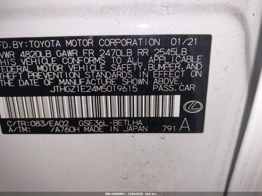 2021 LEXUS IS 350 2021 року Бензин, 3.5, Полный привод, vin - JTHGZ1E24M5019615 из США