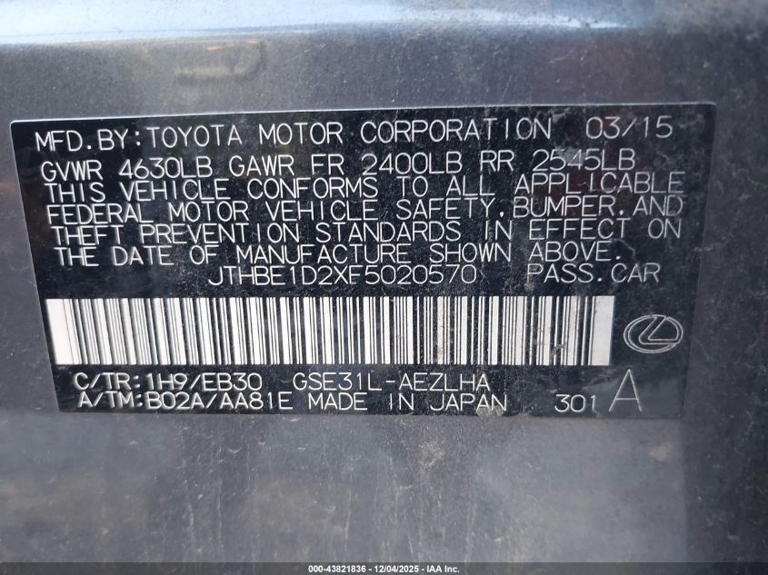 2015 LEXUS IS 350 2015 року Бензин, 3.5, Задний привод, vin - JTHBE1D2XF5020570 из США