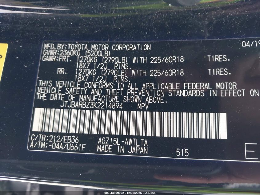 Цвет ЧерныйЦилиндры 4Привод Полный приводVIN JTJBARBZ3K2214894Состояние СтационарноПовреждения Задняя AutoRIA