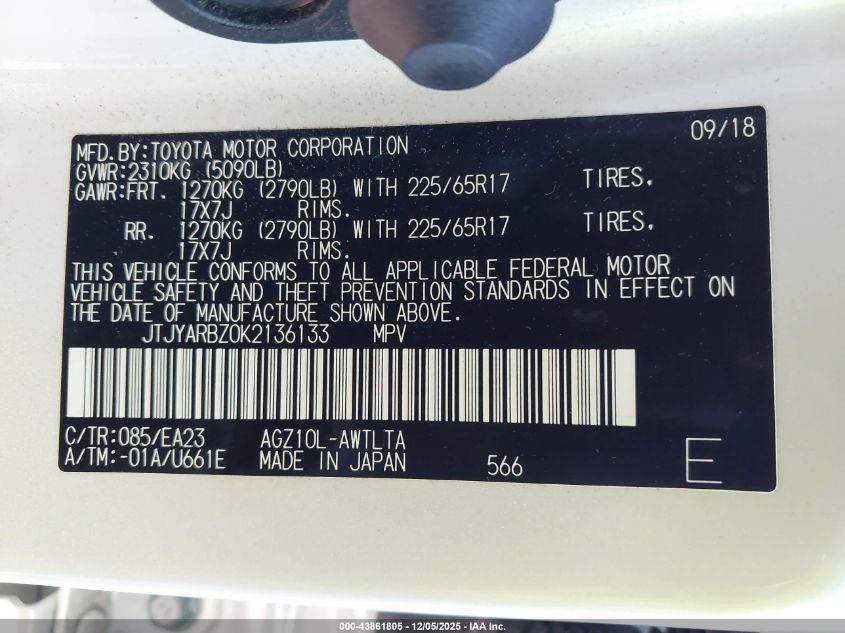 Цвет БелыйЦилиндры 4Привод Передний приводVIN JTJYARBZ0K2136133Состояние Заводится и едет (проверено)Повреждения Передняя или задняя AutoRIA