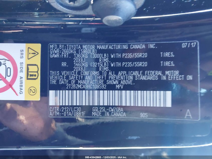 2017 LEXUS RX 350 2017 року Бензин, 3.5, Полный привод, vin - 2T2BZMCA9HC108592 из США