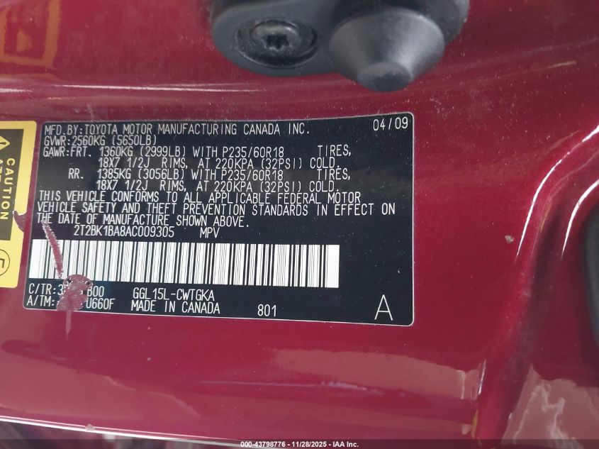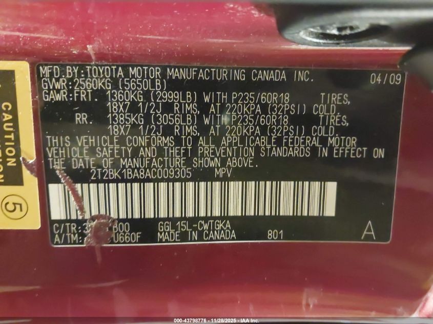 Цвет КрасныйЦилиндры 6Привод Полный приводVIN 2T2BK1BA8AC009305Состояние Заводится и едет (проверено)Повреждения Передняя или задняя AutoRIA