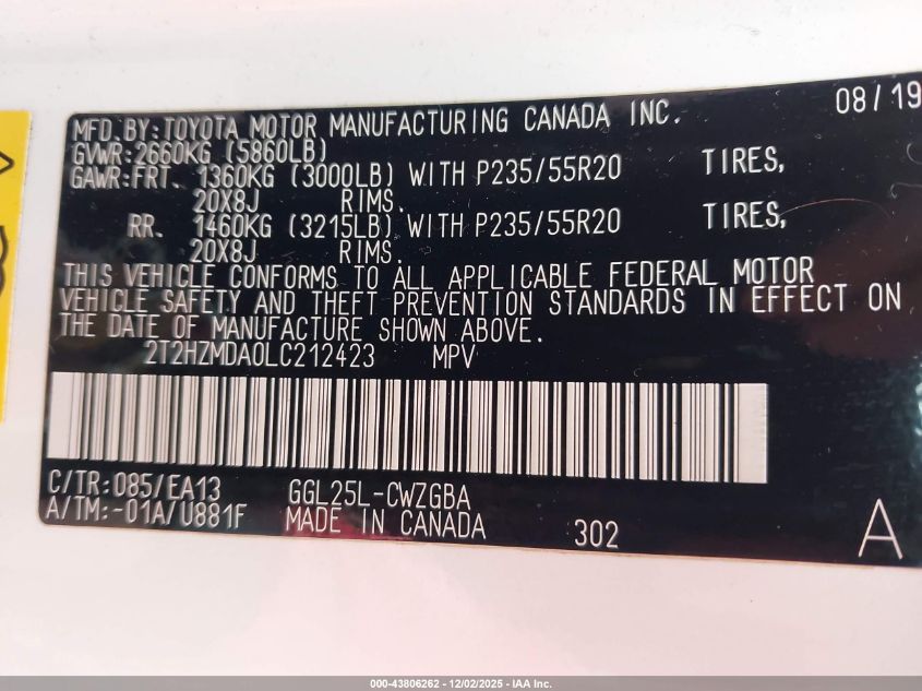 Цвет БелыйЦилиндры 6Привод Полный приводVIN 2T2HZMDA0LC212423Состояние Заводится и едет (проверено)Повреждения Правая сторона AutoRIA