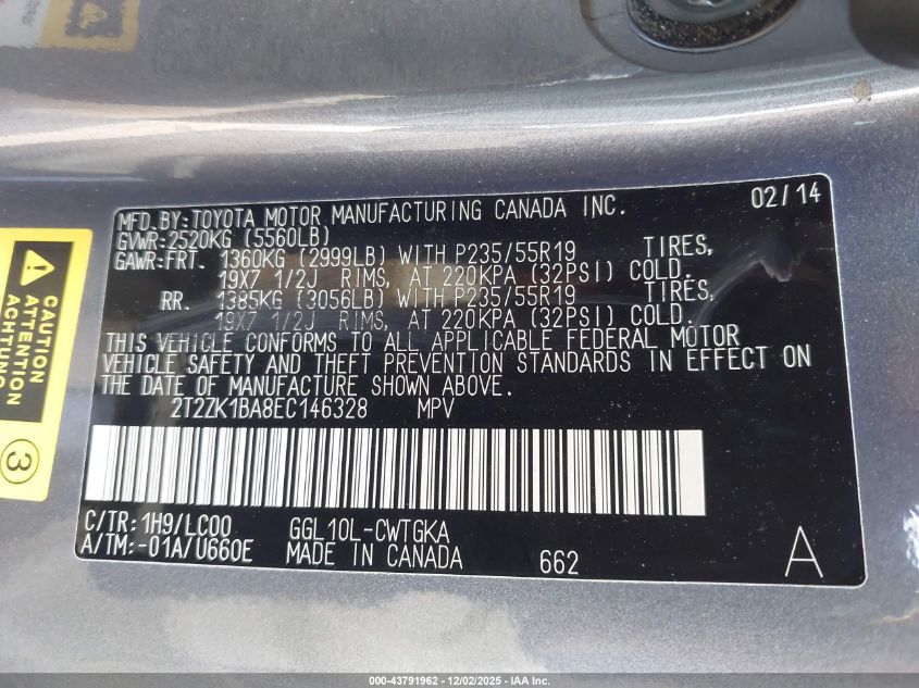 Цвет СерыйЦилиндры 6Привод Передний приводVIN 2T2ZK1BA8EC146328Состояние Заводится и едет (проверено)Повреждения Передняя или задняя AutoRIA
