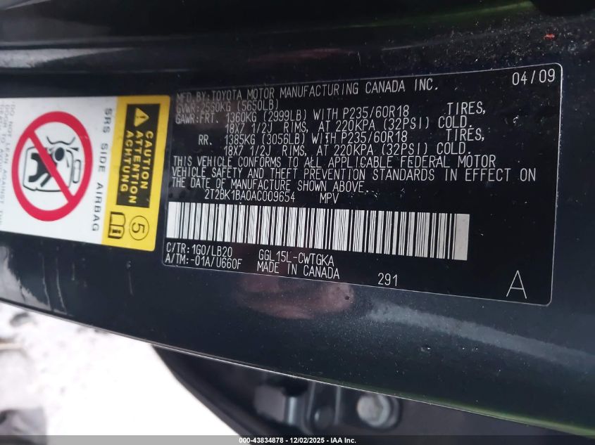 Цвет СерыйЦилиндры 6Привод Полный приводVIN 2T2BK1BA0AC009654Состояние СтационарноПовреждения Передняя и задняя AutoRIA