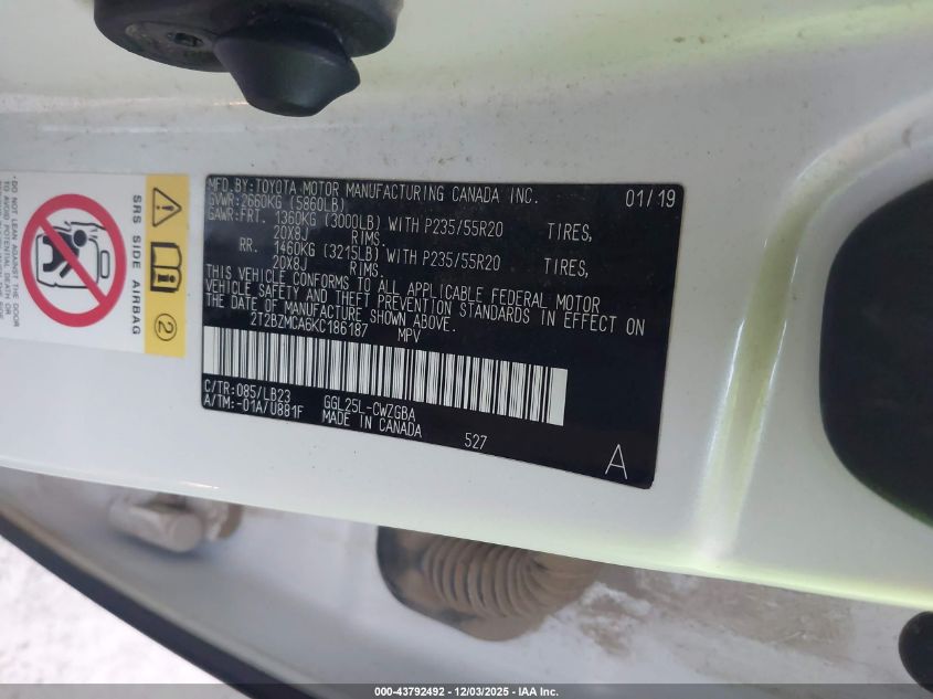 Цвет БелыйЦилиндры 6Привод Полный приводVIN 2T2BZMCA6KC186187Состояние Заводится и едет (проверено)Повреждения Передняя или задняя AutoRIA