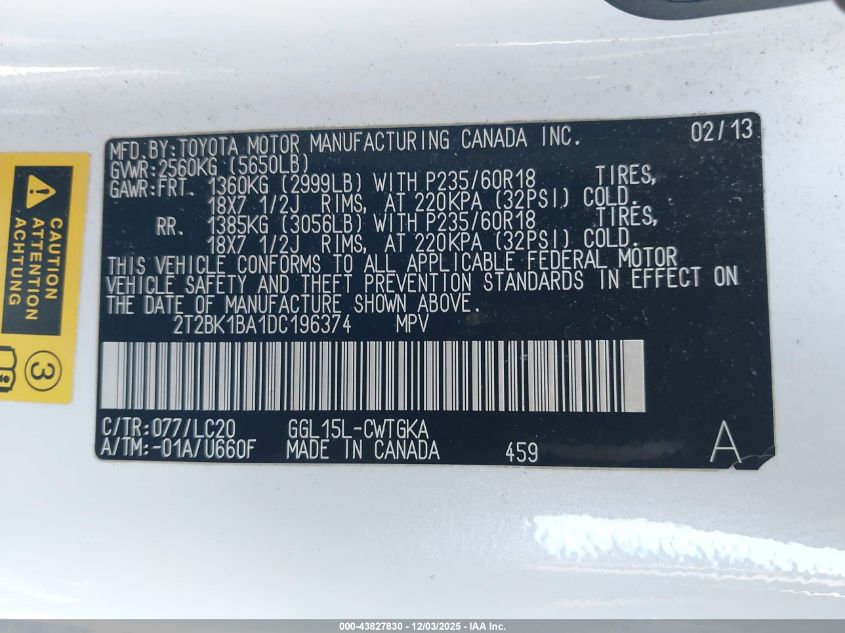 Цвет БелыйЦилиндры 6Привод Полный приводVIN 2T2BK1BA1DC196374Состояние Заводится и едет (проверено)Повреждения Передняя или задняя AutoRIA