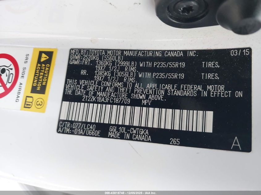 Цвет БелыйЦилиндры 6Привод Передний приводVIN 2T2ZK1BA3FC187709Состояние Заводится и едет (проверено)Повреждения Неизвестно AutoRIA