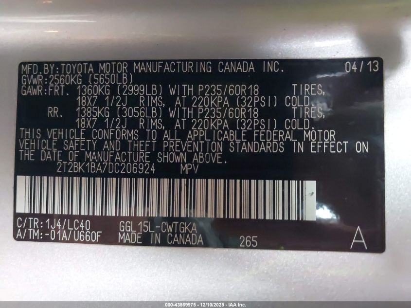 Цвет СеребряныйЦилиндры 6Привод Полный приводVIN 2T2BK1BA7DC206924Состояние Заводится и едет (проверено)Повреждения Задняя AutoRIA