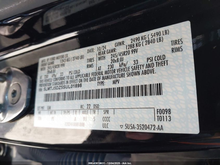 2025 LINCOLN CORSAIR 2025 року Гибрид, 2.5, Полный привод, vin - 5LMTJ5DZ5SUL01898 из США