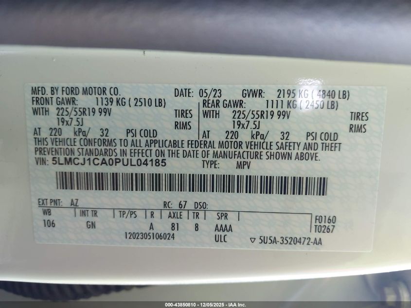 2023 LINCOLN CORSAIR 2023 року Бензин, 2.0, Передний привод, vin - 5LMCJ1CA0PUL04185 из США