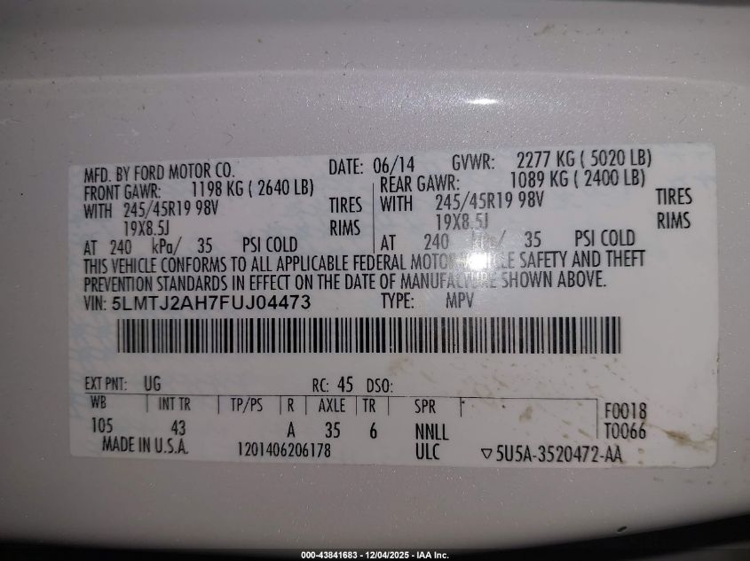 Цвет БелыйЦилиндры 4Привод Полный приводVIN 5LMTJ2AH7FUJ04473Состояние Заводится и едет (проверено)Повреждения Левая сторона AutoRIA