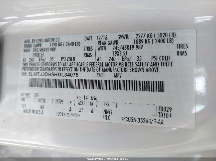 2017 LINCOLN MKC 2017 року Бензин, 2.3, Полный привод, vin - 5LMTJ3DH5HUL34078 из США
