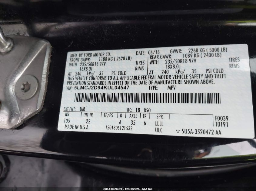 2019 LINCOLN MKC 2019 року Бензин, 2.0, Полный привод, vin - 5LMCJ2D94KUL04547 из США