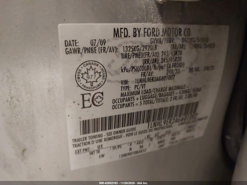 2010 LINCOLN MKS 2010 року Бензин, 3.7, Полный привод, vin - 1LNHL9ER2AG601002 из США