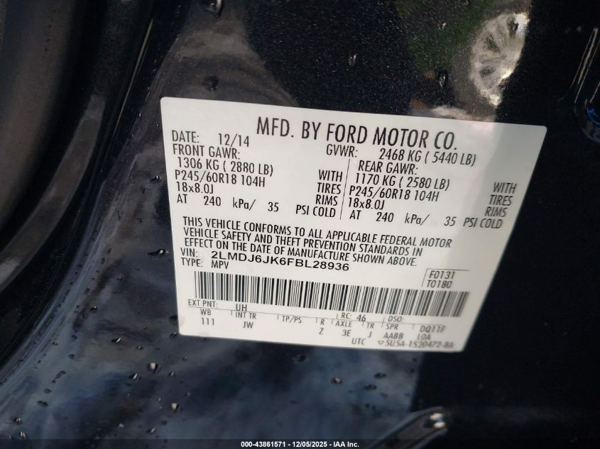 2015 LINCOLN MKX 2015 року Бензин, 3.7, Передний привод, vin - 2LMDJ6JK6FBL28936 из США