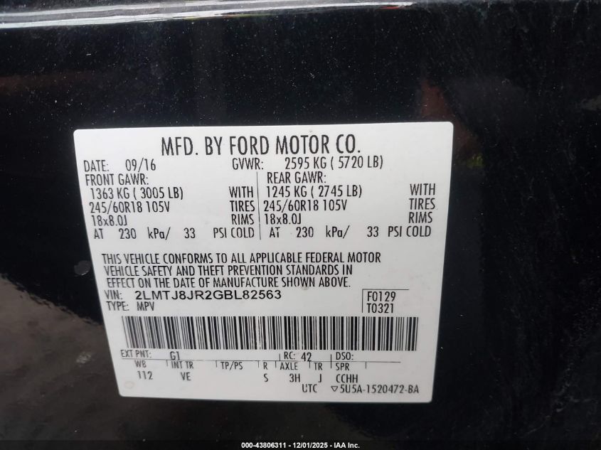 2016 LINCOLN MKX 2016 року Бензин, 3.7, Полный привод, vin - 2LMTJ8JR2GBL82563 из США