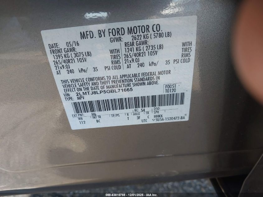 Цвет ШампаньЦилиндры 6Привод Полный приводVIN 2LMTJ8LP5GBL71665Состояние Заводится и едет (проверено)Повреждения Левая сторона AutoRIA