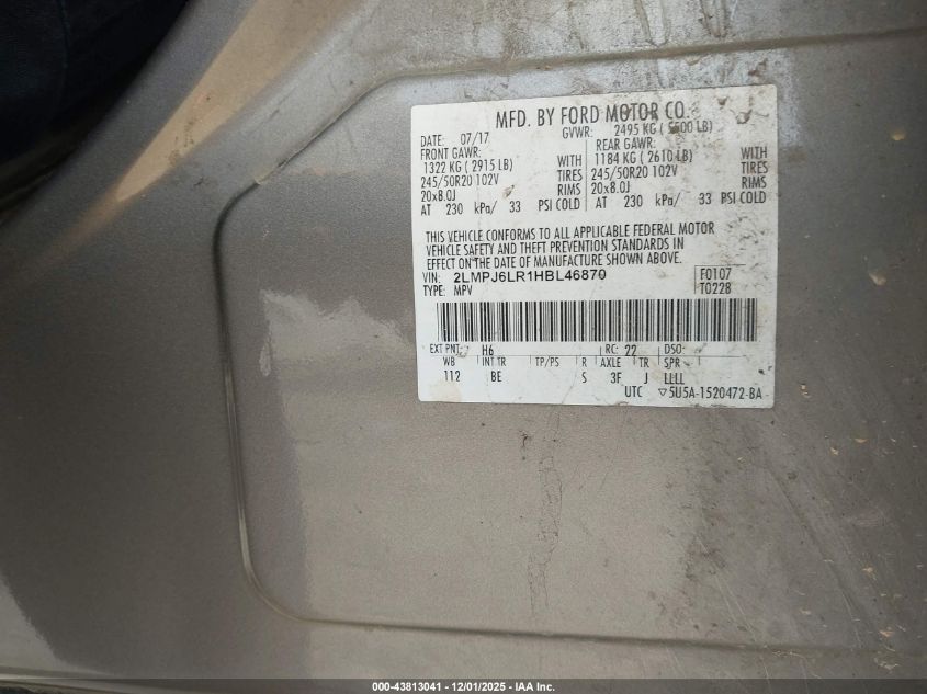 Цвет КоричневийЦилиндры 6Привод Передний приводVIN 2LMPJ6LR1HBL46870Состояние СтационарноПовреждения Передняя или задняя AutoRIA