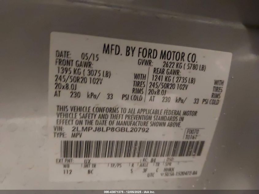 Цвет СеребряныйЦилиндры 6Привод Полный приводVIN 2LMPJ8LP8GBL20792Состояние СтационарноПовреждения Левая сторона AutoRIA