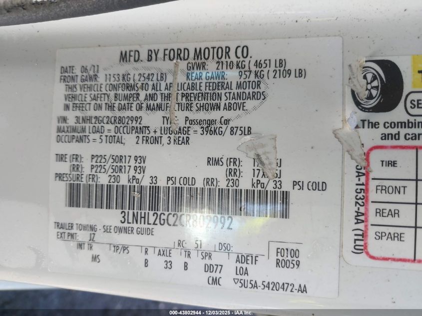 2012 LINCOLN MKZ 2012 року Бензин, 3.5, Передний привод, vin - 3LNHL2GC2CR802992 из США