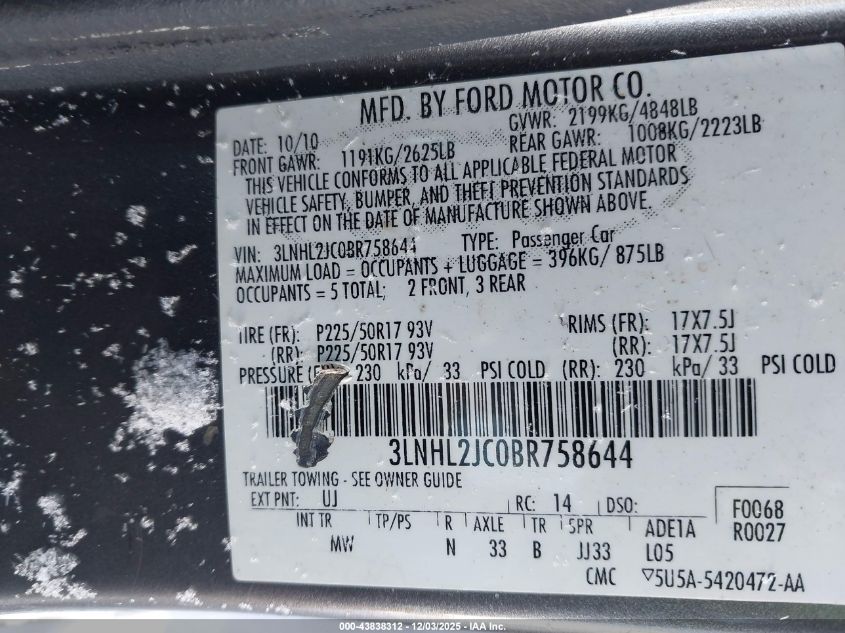 2011 LINCOLN MKZ 2011 року Бензин, 3.5, Полный привод, vin - 3LNHL2JC0BR758644 из США