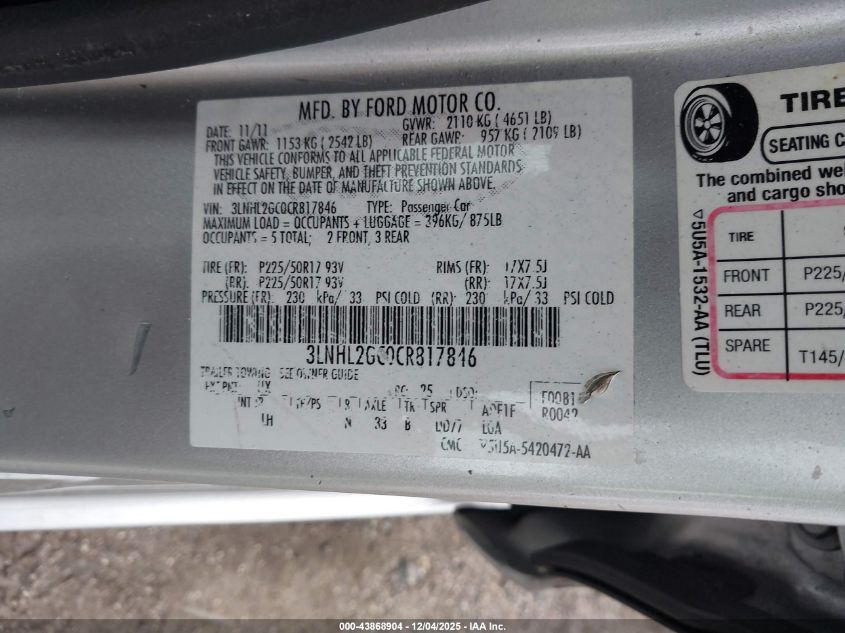 2012 LINCOLN MKZ