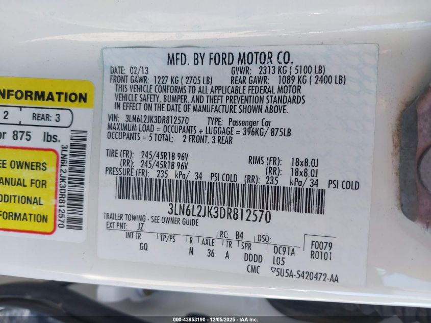 2013 LINCOLN MKZ 2013 року Бензин, 3.7, Полный привод, vin - 3LN6L2JK3DR812570 из США