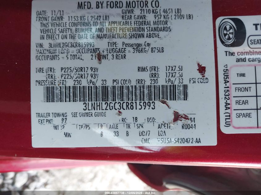 2012 LINCOLN MKZ 2012 року Бензин, 3.5, Передний привод, vin - 3LNHL2GC3CR815993 из США
