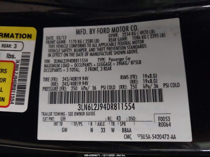 2013 LINCOLN MKZ 2013 року Бензин, 2.0, Полный привод, vin - 3LN6L2J94DR811554 из США