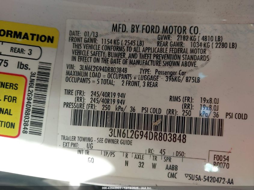 2013 LINCOLN MKZ 2013 року Бензин, 2.0, Передний привод, vin - 3LN6L2G94DR803848 из США