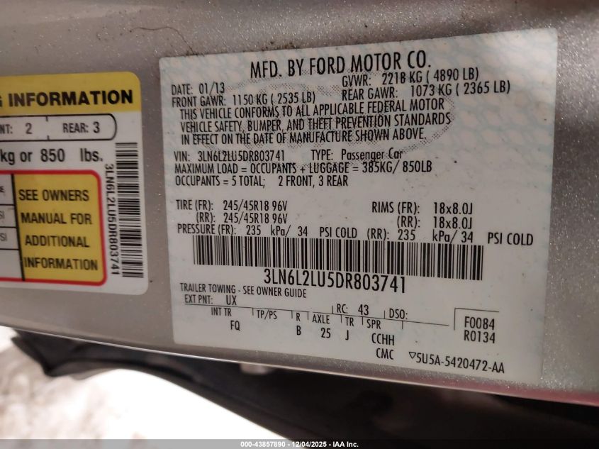 2013 LINCOLN MKZ 2013 року Гибрид, 2.0, Передний привод, vin - 3LN6L2LU5DR803741 из США