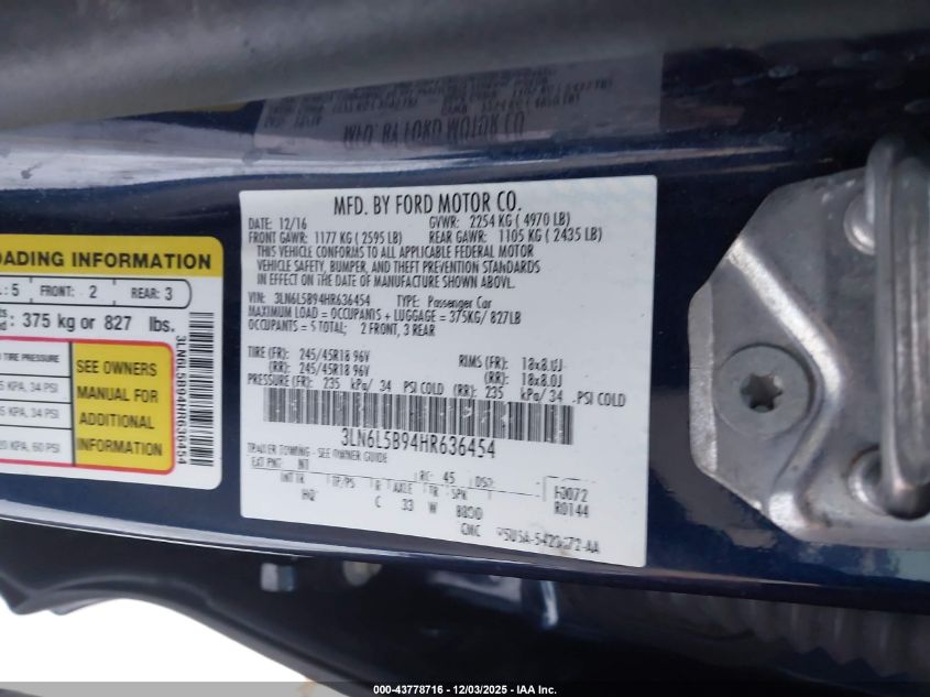2017 LINCOLN MKZ 2017 року Бензин, 2.0, Полный привод, vin - 3LN6L5B94HR636454 из США
