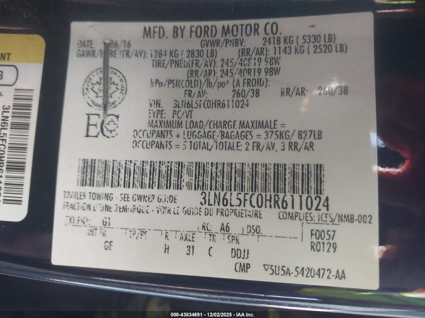 2017 LINCOLN MKZ 2017 року Бензин, 3.0, Полный привод, vin - 3LN6L5FC0HR611024 из США