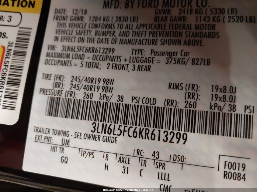 2019 LINCOLN MKZ 2019 року Бензин, 3.0, Полный привод, vin - 3LN6L5FC6KR613299 из США