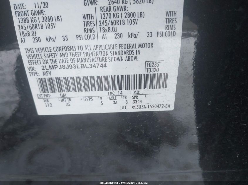 2020 LINCOLN NAUTILUS 2020 року Бензин, 2.0, Полный привод, vin - 2LMPJ8J93LBL34744 из США