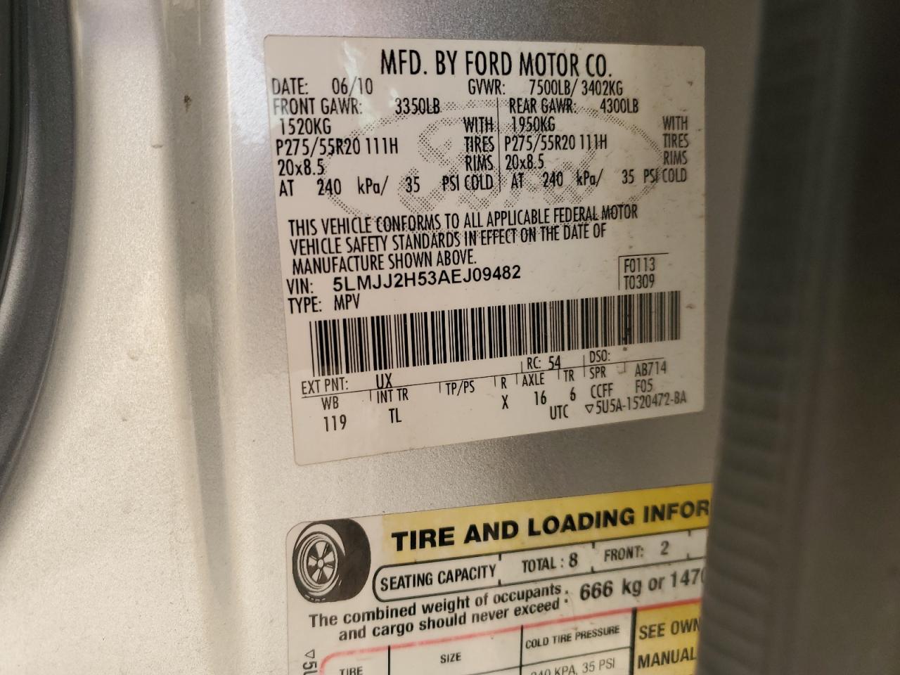 Цвет СеребряныйЦилиндры 8Привод Задний приводVIN 5LMJJ2H53AEJ09482Состояние Заводится и едет (проверено)Повреждения Передняя или задняя AutoRIA