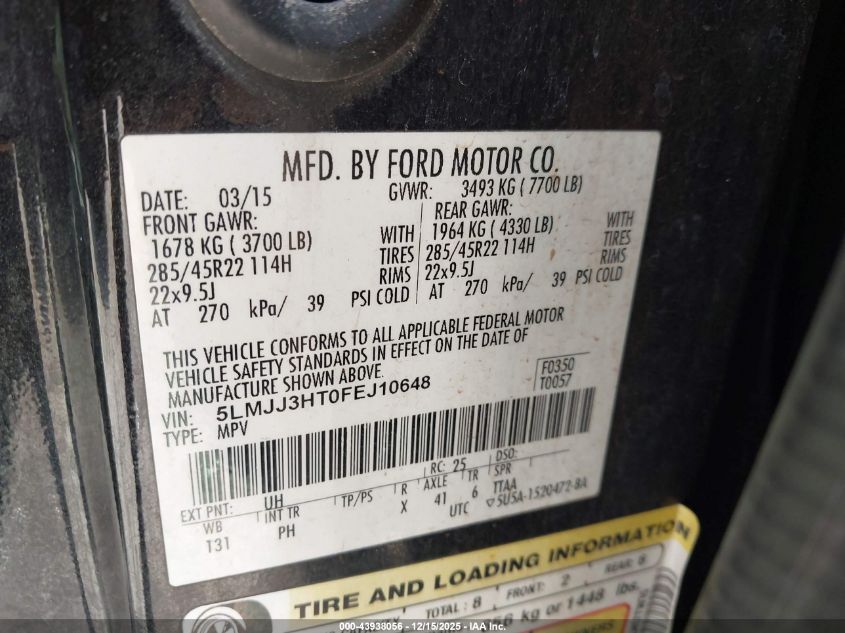 2015 LINCOLN NAVIGATOR 2015 року Бензин, 3.5, , vin - 5LMJJ3HT0FEJ10648 из США