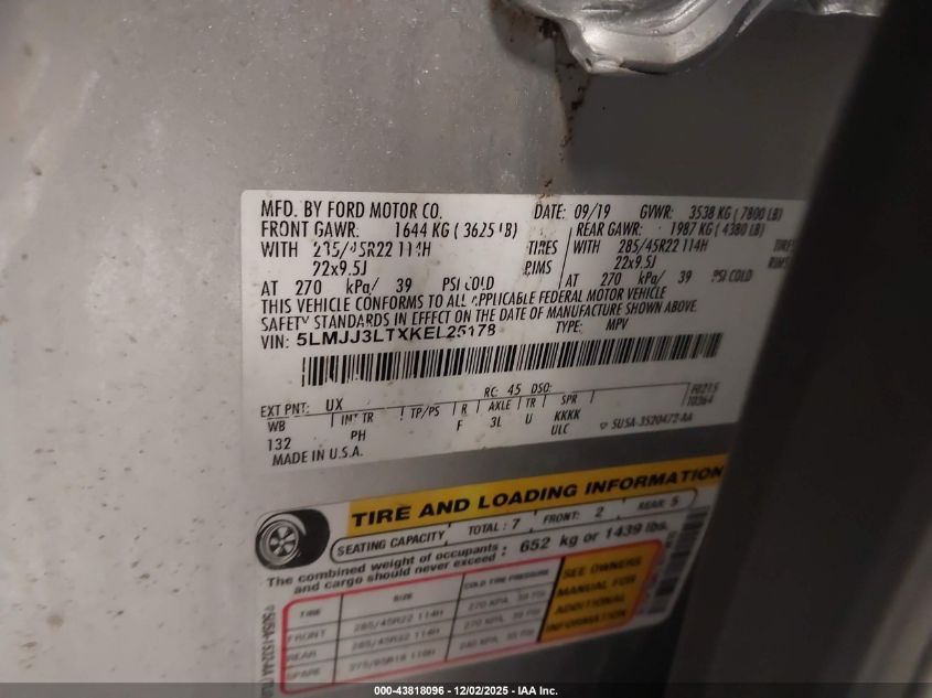2019 LINCOLN NAVIGATOR 2019 року Бензин, 3.5, Полный привод, vin - 5LMJJ3LTXKEL25178 из США