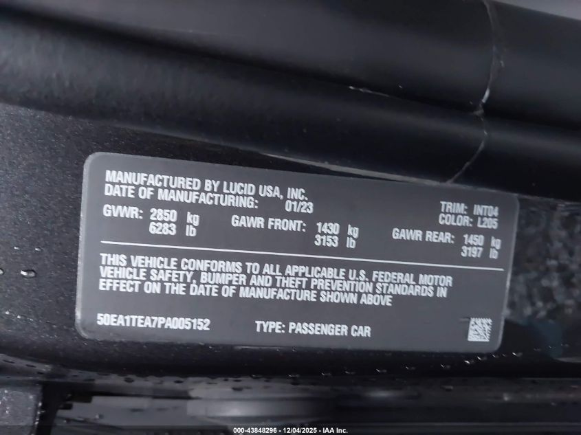 2023 LUCID AIR 2023 року Электрический, U, Полный привод, vin - 50EA1TEA7PA005152 из США